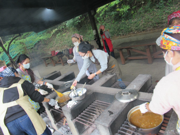 プラネタリウムから戻った子どもたちは秋空の下、お腹いっぱいカレーを食べて大満足!!