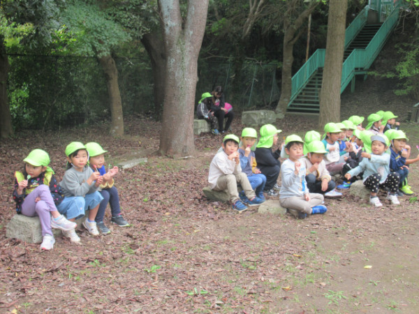 お天気が心配されたのですが、幼稚園に着いた途端に雨。日頃の行いが良く、お空も味方してくれる年長さんでした。