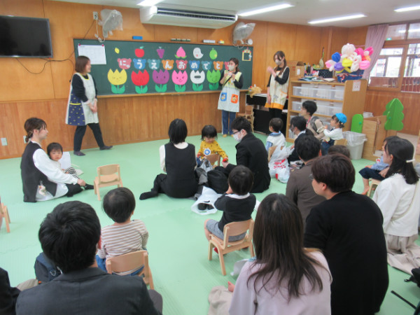 2歳児すみれ組の入園おめでとうの会を行いました。 今年度から2歳児クラスがはじまり、「はじめまして」のお友だちがたくさん! 幼稚園ではどんな楽しいことが待っているのかな? 遊んで、笑って、泣いて、食べて、寝て…生活を一緒に楽しみましょう。