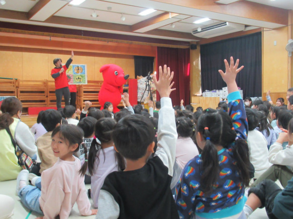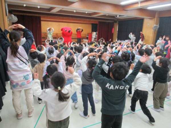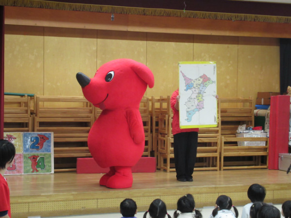 子どもたちにとっては初めて、幼稚園にチーバくんが遊びに来てくれました。 愛らしいチーバ君に子どもたちは大喜び!! 大好きな♪ぶろっこリン体操♪を一緒に踊り、クイズも楽しみました。 千葉県の地図と同じ形のチーバくん。 千葉県についてもいろいろなことを教えてもらいました。(市川市はチーバ君の口と舌の上の方とのこと) 写真を撮ったりタッチやハグをしたり、別れを惜しんでいた子どもたちでした。 チーバくん、ありがとう!!