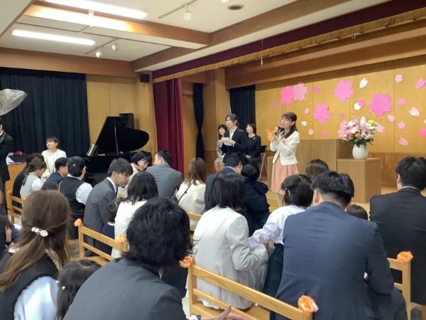 第74回入園式を行いました。 新しくなった制服を着た年少うめ組さんが全員出席。 にじ組(預かり保育)のお兄さんお姉さんからの♪チューリップの歌で入園式が始まりました。 入園式では担任の先生からの呼名にお返事してくれたお友だち。 先生たちからは園歌のプレゼントをしました。 来週からたくさん遊んで、幼稚園で楽しく過ごしましょう!