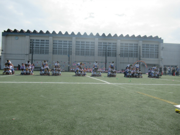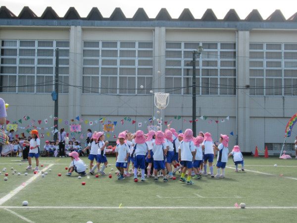 年長組は綱引き、扇子を持っての舞、組体操、リレーとたくさんの競技に取り組み、お友だちと力を合わせて、精一杯やり遂げました。