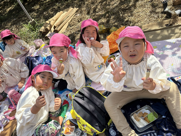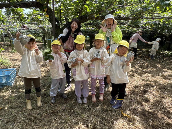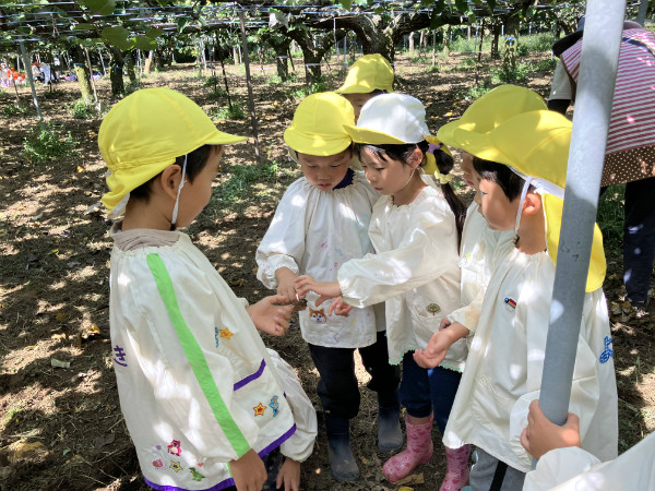 お弁当を食べた後は梨園散策!セミの抜け殻を探す中、まだ飛んでいたセミにも出会うことができました。どんぐりを見つけたり、コオロギやバッタなど生き物や木の実にも触れ、楽しい一日を過ごしました(^^♪保護者の皆様、ご用意ありがとうございました♪
