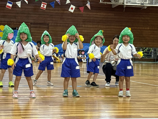 年中組はダンスとパラバルーンです。皆で息の合ったダンスとパラバルーン。特にバルーンは少しのずれで膨らまなくなったり、丸くならなかったり。でも、本番は全ての技が見事に決まりました!(^^)!一人では成しえないことをクラス一丸となって行う事ができました。