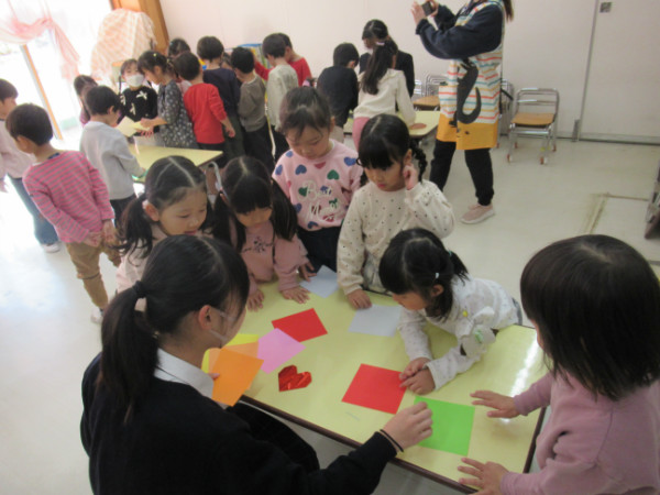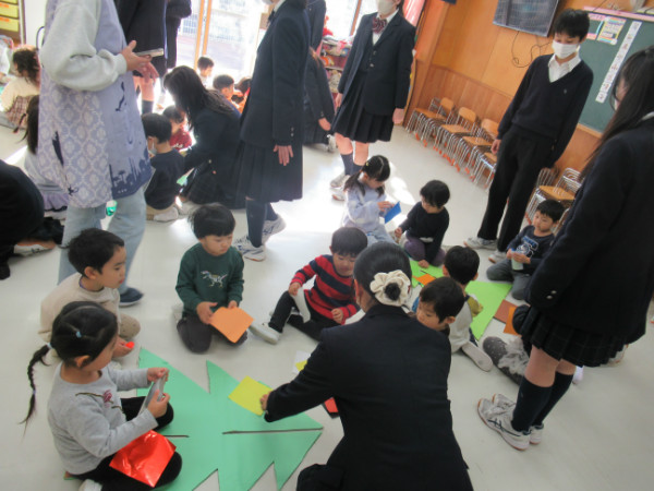 各クラスで、折り紙を教えてくれたり、宝探しや魚釣りをしたり、クリスマスツリーを作ったり…一緒に遊んでくれました。