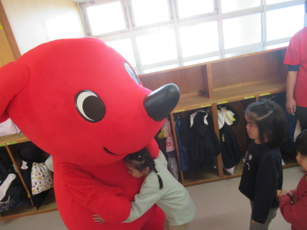 子どもたちにとっては初めて、幼稚園にチーバくんが遊びに来てくれました。 愛らしいチーバ君に子どもたちは大喜び!! 大好きな♪ぶろっこリン体操♪を一緒に踊り、クイズも楽しみました。 千葉県の地図と同じ形のチーバくん。 千葉県についてもいろいろなことを教えてもらいました。(市川市はチーバ君の口と舌の上の方とのこと) 写真を撮ったりタッチやハグをしたり、別れを惜しんでいた子どもたちでした。 チーバくん、ありがとう!!