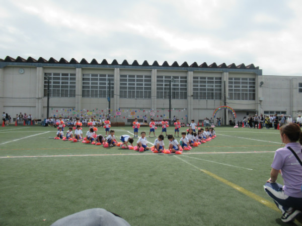 年長組は綱引き、扇子を持っての舞、組体操、リレーとたくさんの競技に取り組み、お友だちと力を合わせて、精一杯やり遂げました。