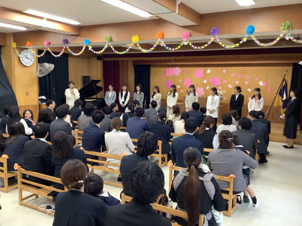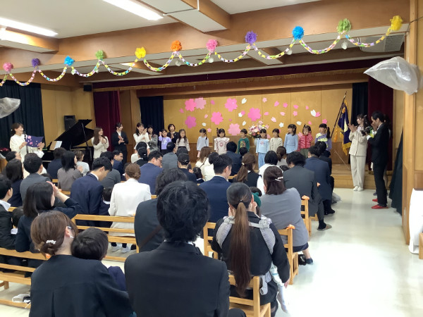 第74回入園式を行いました。 新しくなった制服を着た年少うめ組さんが全員出席。 にじ組(預かり保育)のお兄さんお姉さんからの♪チューリップの歌で入園式が始まりました。 入園式では担任の先生からの呼名にお返事してくれたお友だち。 先生たちからは園歌のプレゼントをしました。 来週からたくさん遊んで、幼稚園で楽しく過ごしましょう!