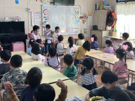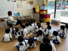 みんなで集まって、お当番さんの紹介をしたり、歌を歌ったりします。