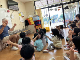 午前中の活動の中には、週に2回ネイティブの英語講師と一緒に遊ぶ「英語であそぼう」や、週に1回の体操教室、年長児は1年に6回の花まる学習会の「小学校準備コース」も実施しています。その他、戸外では元気いっぱい好きなあそびをしたり、自然探索をしたり、運動遊びを楽しみます。