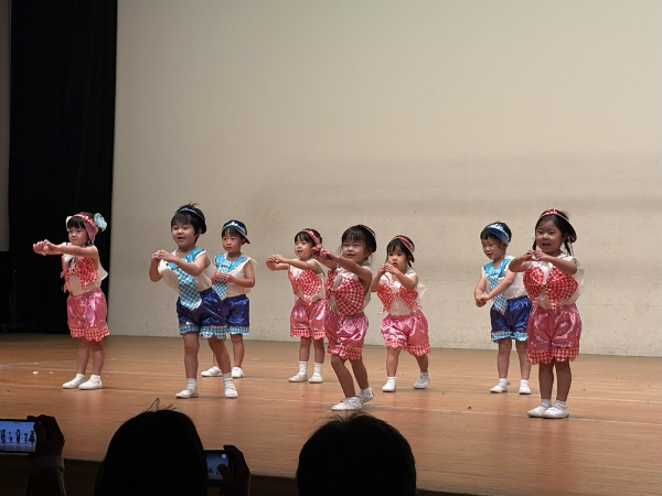 初めての場所にきょろきょろ、わくわく、ちょっぴり不安、そんな表情で2日間の練習を経て、本番ではノリノリのダンスで表情豊かに踊ることが出来ました。
