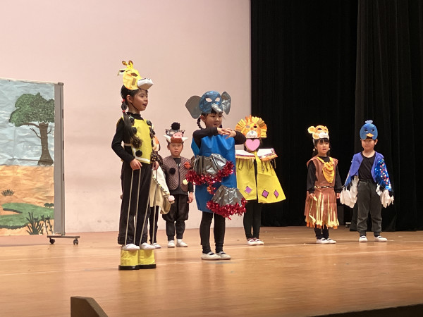 歌やお遊戯、オペレッタ、劇など、保護者の方をお招きして市川学園中学高校のホールを借りて行いました。